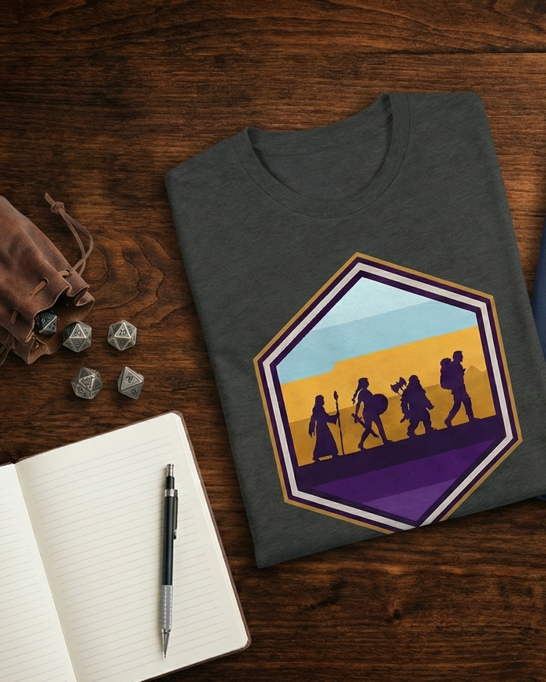 Soft, durable cotton blends that hold up whether you're leaning over a battle map or explaining why your bard absolutely needed to do that. Exact specs are on each product page.